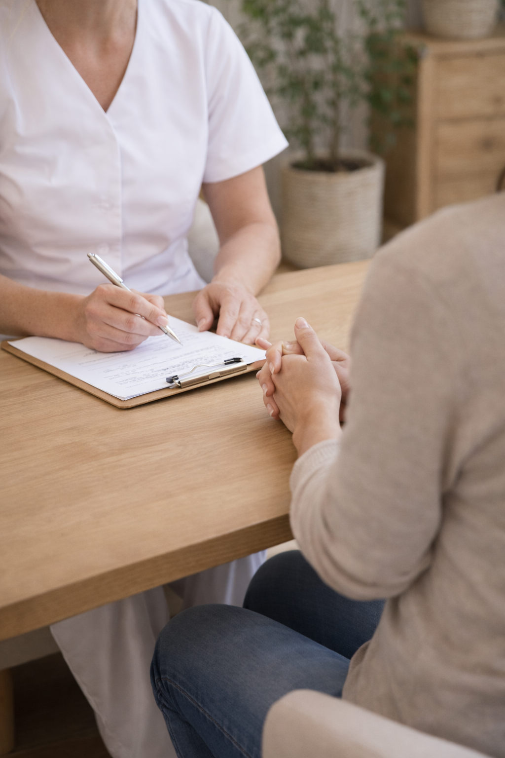 Bitte bringen Sie zum ersten Termin, sofern vorhanden, folgende Unterlagen mit: eine Übersicht Ihrer aktuell eingenommenen Medikamente und Nahrungsergänzungsmittel (inklusive Verpackungen), Laborberichte und Befunde, zusätzliche Arztberichte Ihres Haus- oder Facharztes, ein kurzes Ernährungs- und Trinkprotokoll (z. B. über die letzten drei Tage), Zykluskalender (falls relevant) style.